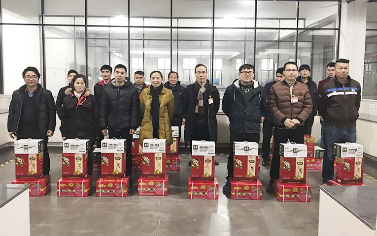 岁末临近,为感谢全体员工一年来的努力付出,关心员工生活,公司为每位员工发放了丰富的春节年货,给全体员工带来了新年的气息。公司在行政部的细致安排下,于2017年1月中旬开始陆续发放年货。年货有农家山茶籽油,苹果双份,砂糖橘,冰糖橙,香梨,金典牛奶,猴菇饼干,红薯粉等共计九类。