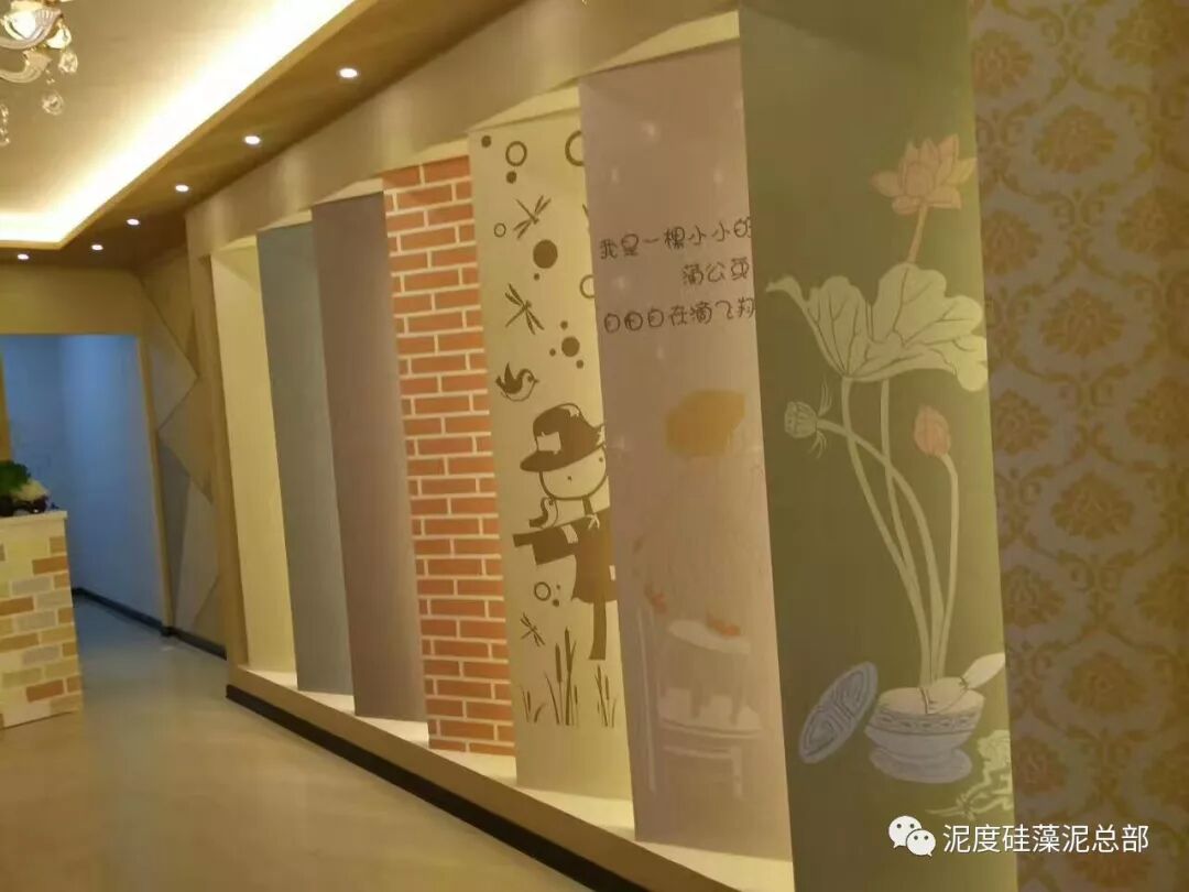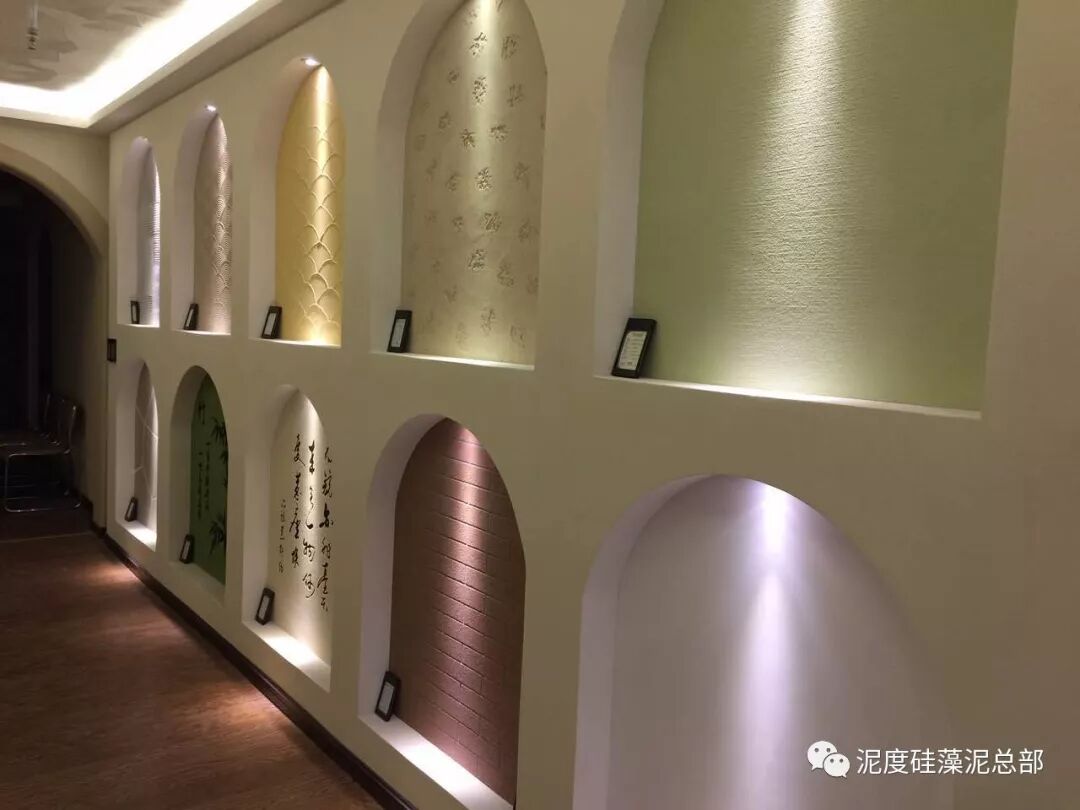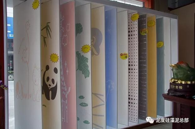 泥度硅藻泥的品类多,款式齐,店内设立多层次的展板区,为客户提供更多的选择。