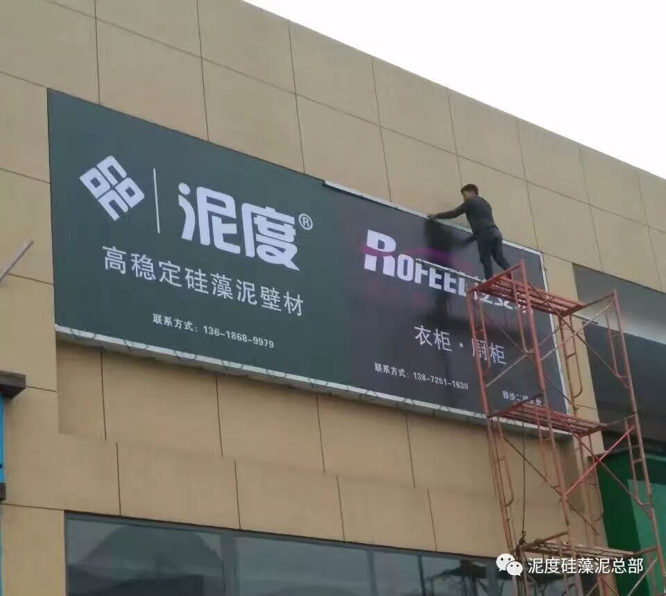 泥度硅藻泥的门头我们有着统一的标准,LOGO及字体,颜色以白、绿、黑色为主。