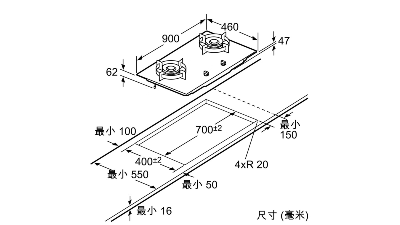 80 x 900 x 460 毫米