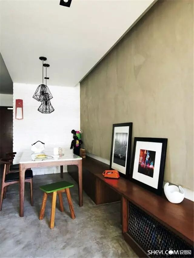 所谓的水泥粉光地坪,是以水泥与砂按比例调配施作。水泥粉光为自然、透气材质,有毛细孔,且其表面的色泽深浅变化与镘刀痕迹,具有粗犷的美感,能打造出新旧交融的后现代风格空间。