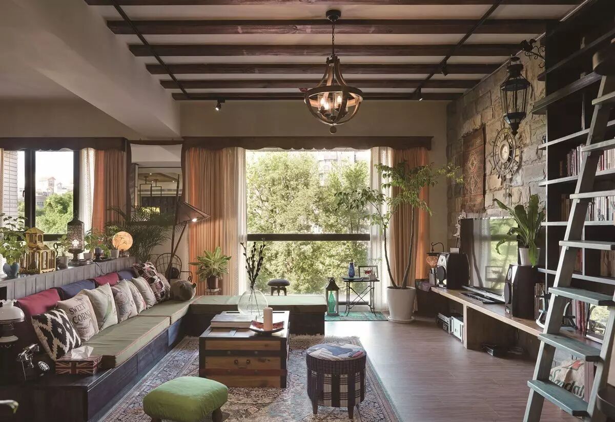 在家具选配上,主要选用质地厚重,体型宽大的家具,展现出原始粗犷、自然惬意的生活氛围。在色彩上,以自然色调为主,给人怀旧、质朴的感觉。材质上,大量使用石材、木饰面板、实木、壁纸、布艺等,用来营造自然舒适的生活气息。