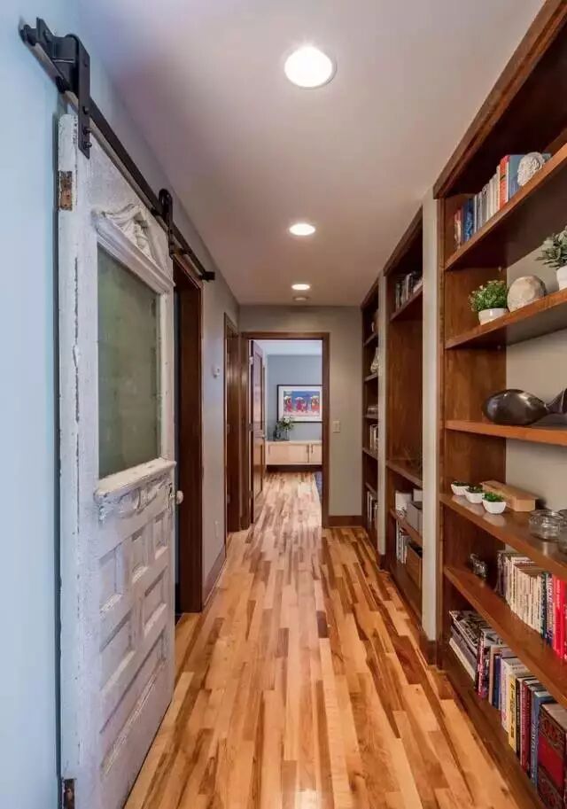 宽度足够的情况下,在走廊家装小书柜,就可以把走廊改造成小型书房。喜欢看书买书的你再也用担心书籍堆满地。走廊书房,随手就可以拿起想看的一本书。