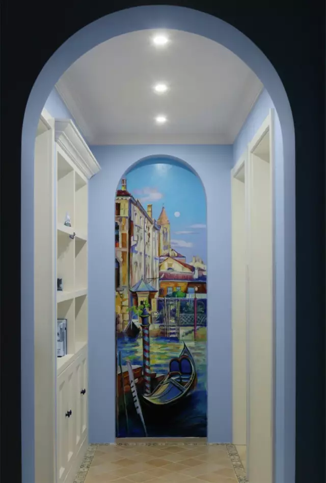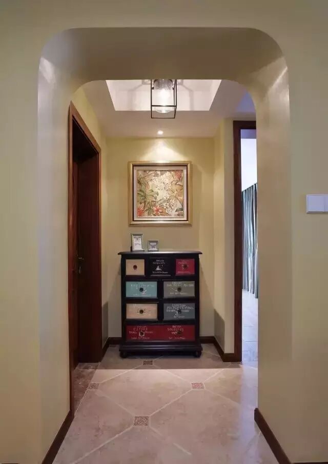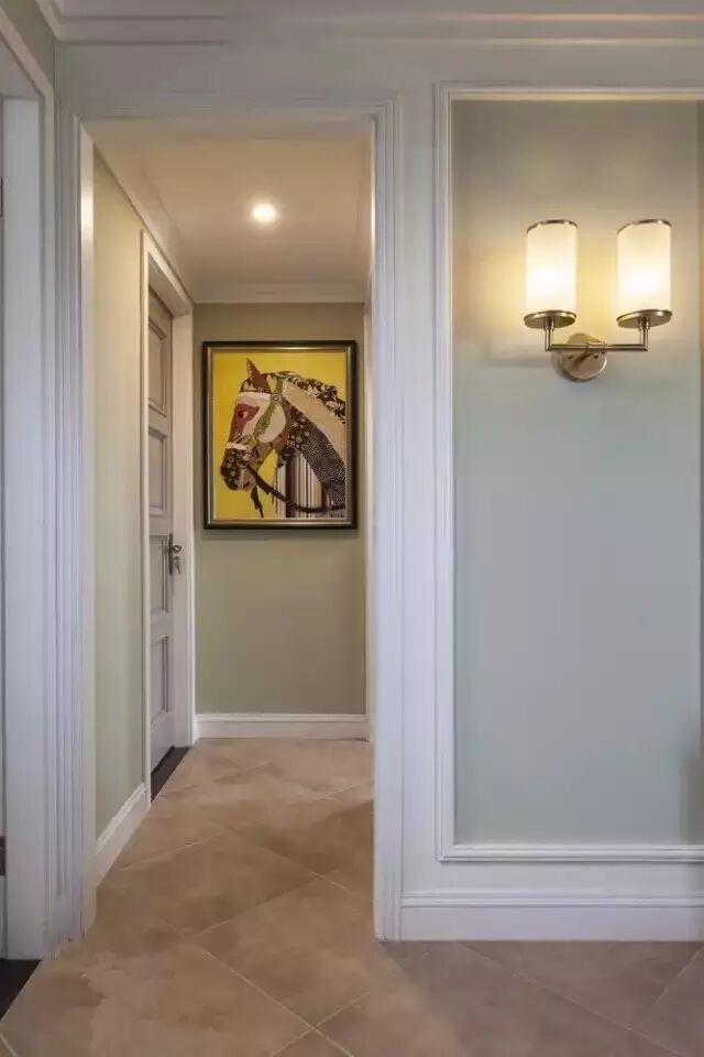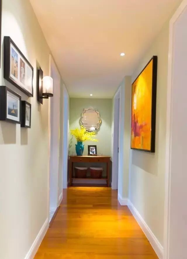 也可以选择挂上一些自己喜欢的艺术画布置走廊墙壁。配合灯光作用,走廊也能变成家里的一道亮丽的风景。