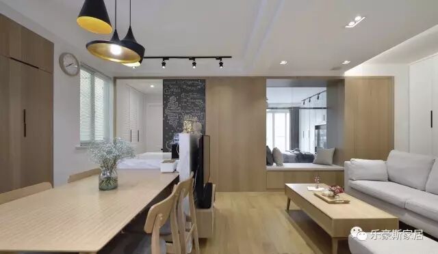 主卧和客厅之间开一扇窗,通过卧室“借”光到客厅,解决客厅采光不足的难题。