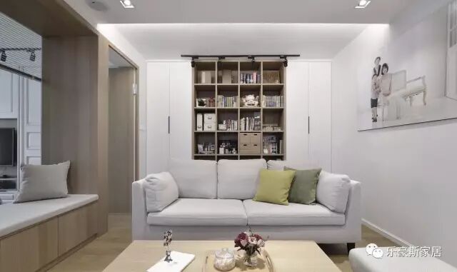 客厅兼顾书房的功能,闲来无事,坐在沙发上看书学习,非常惬意。