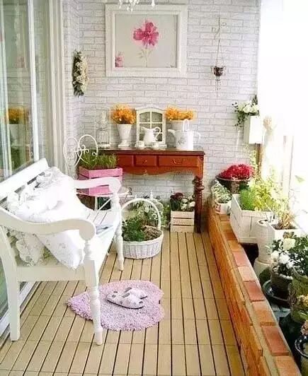 阳台改造成小花园是最常见的做法,毕竟家居中总的有个地方多布置一些绿色植物,既能美化家居,也能清新空气。在阳台中多摆放一些植物,放上舒适的坐垫与小茶几,一个充满生机的小空间就出来了,闲来没事可以置身诸多花草植物中喝喝咖啡偷偷懒,这样的空间再赞不过。