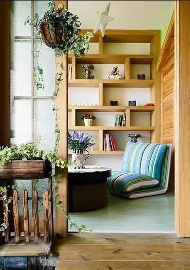 每个人都希望家里有个可以让自己静心阅读的地方,用小阳台来改造就是很好的做法。放上舒适的坐垫、精致的花卉小盆栽,大片的绿色看起来生机盎然,然后享受一下午暖暖的阳光。