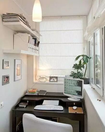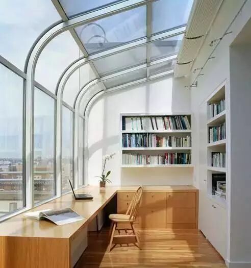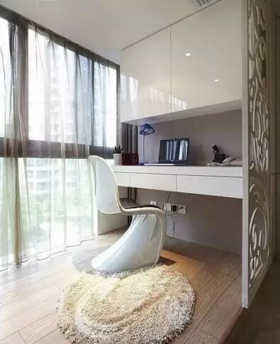 阳台空间一般都比较小,可以考虑改成小书房,毕竟小书房需要的空间不大,小小的阳台利用起来更合适,而且采光好。色调方面可以选择自己喜欢的颜色,但白色会显得比较清新自然,再放些精致小盆栽,一个小清新的舒适书房就出来了。