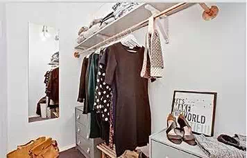 不要衣柜门,只要大帘子。如果你预算极度紧张,我想告诉你件事儿,选择便宜的布料用这样的帘子代替推拉门,成本可以节省至少5倍!