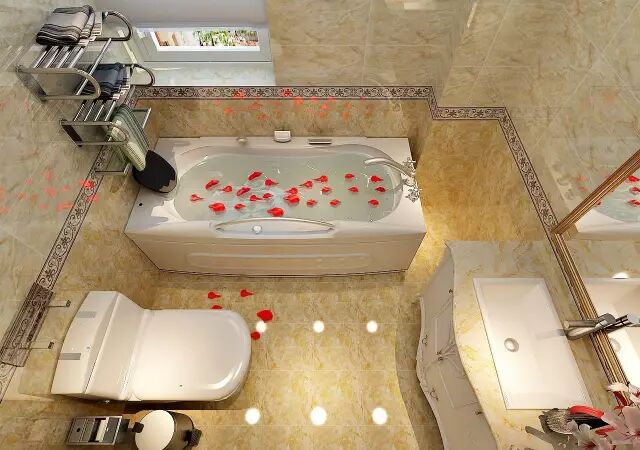 卫生间贴砖以小腰线做分割,搭上纹路自然的大理石墙面,贵气爆棚,太奢华了!