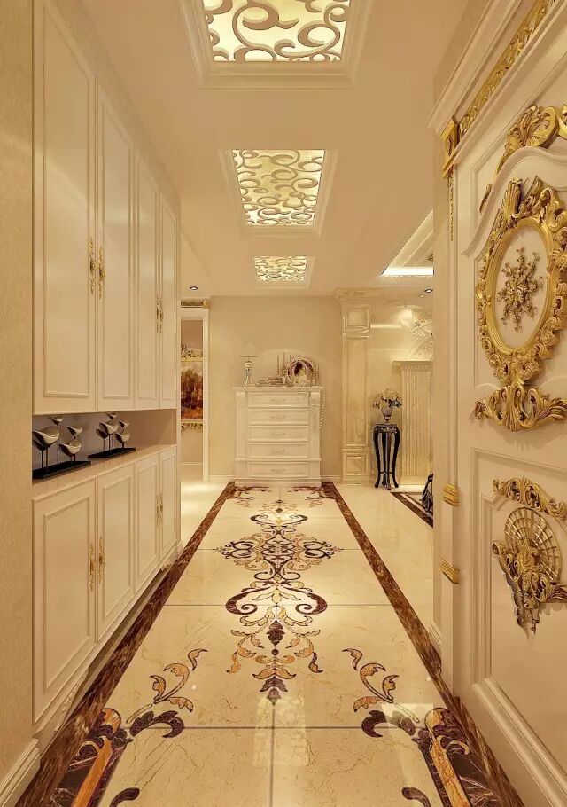 欧式玄关拼花呈现欧式独特的古典奢华,精致气质让人眼前一亮。