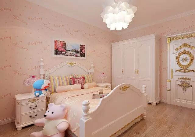 儿童房是粉粉的色调,一看就是间小公主的房间。简洁的布置不会给孩子的移动带来太多的障碍,也方便孩子玩耍活动。
