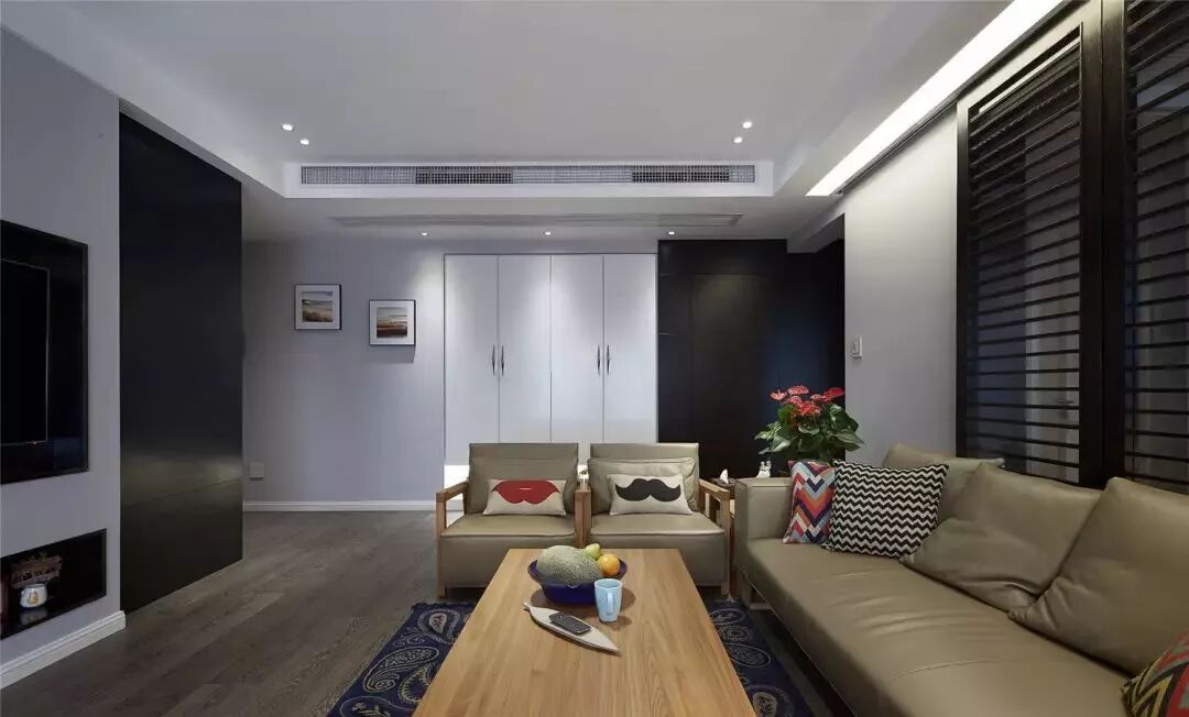 沙发背景用深色木质移门,既做了和书房间的通透隔断,又做了装饰增加整体的视觉感。
