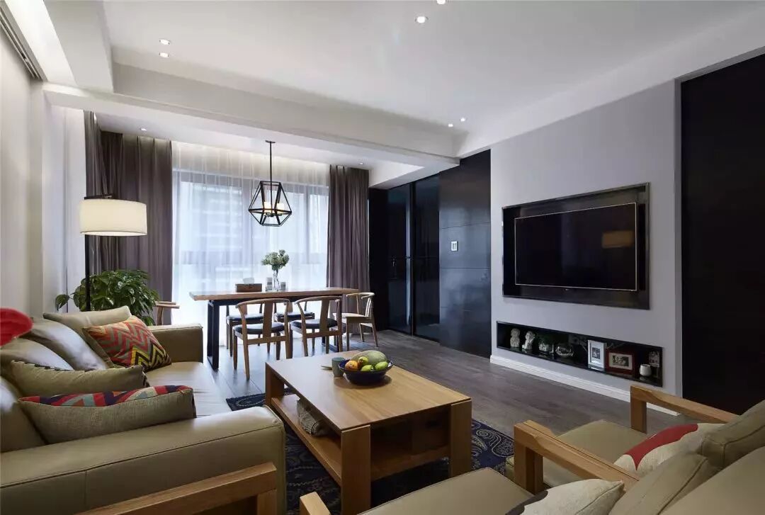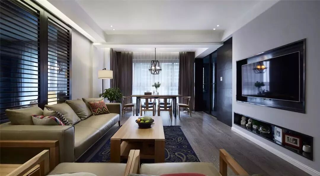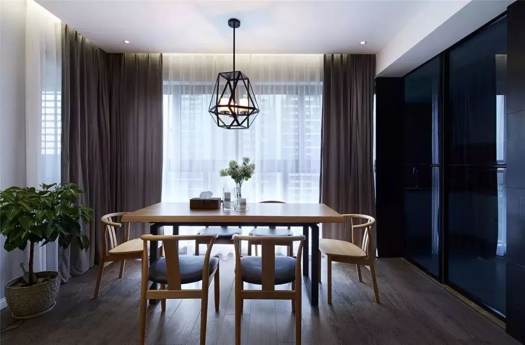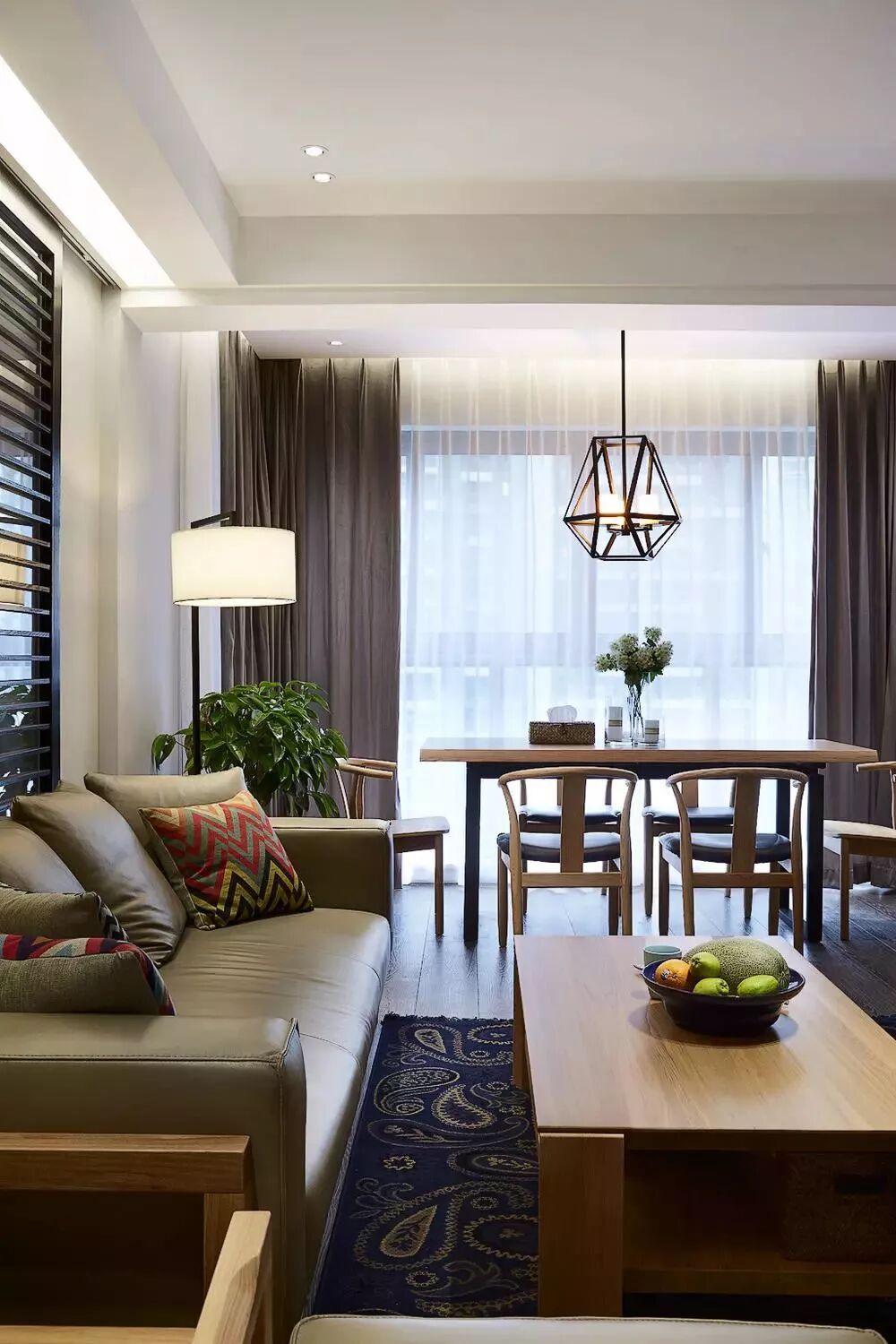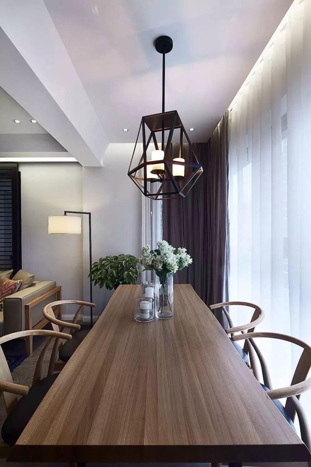 由客厅向餐厅远望,木质桌几遥相呼应成就了一致的开阔感。台式的简约都体现在了细节当中。