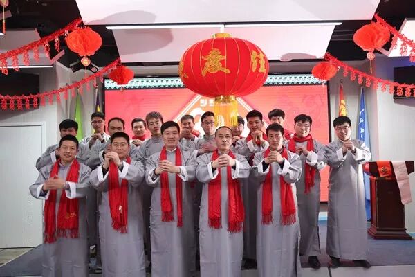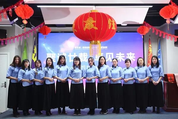 活动当天,男员工们身着长衫,女员工们则身着蓝衣黑裙,古典而又洋气,有一种强烈的时代特色,乍眼看去,仿佛回到了民国初年。除去着装上的别出心裁,出自员工之手的一幅幅对联、福字、吉祥语更是别具一格,“海纳百川”、“岁月静好”、“一世安稳”等祝福语让农历新年的氛围越来越浓,也让员工们的心越来越近。