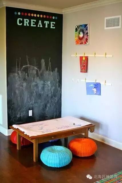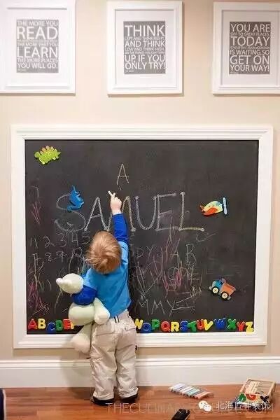 ▼孩童时期正是想象力最旺盛的时候,何不给孩子一个发挥的空间呢?一面黑板墙正好可以满足孩子的需求和想象~
