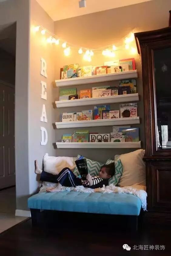 ▼利用房间的角落,做一个简易的阅读角,培养孩子从小就阅读的习惯~腹有诗书气自华,爱读书的人不管是气质还是修养都不会太差!