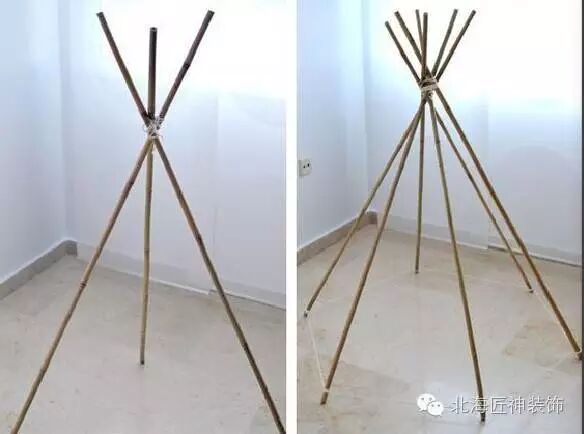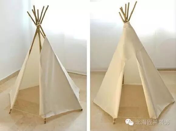 ▼动手搭建私密屋也并不难~几根竹竿和一张大床单就可以完成~