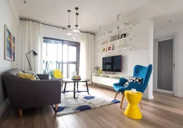 ▲ 北欧风的基调一般都是白色,在电视背景中加入隔板是北欧常用元素