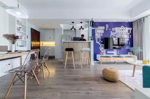 ▲ 其他走个性路线的风格,可以多加一些创意,比如这个爱旅游的业主把电视墙做了一个洗车造型,汽车轮胎是旧自行车上拆下来的,车窗是玻璃,车门是电视机