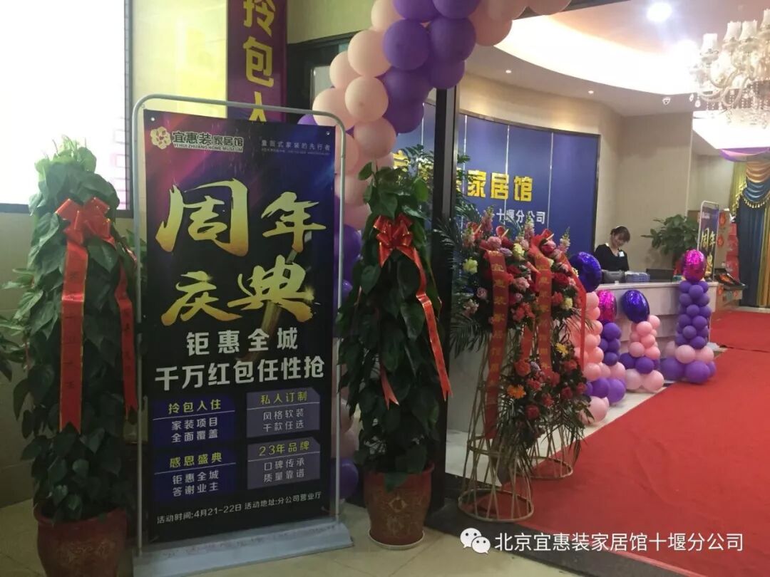 宜惠装家居馆周年庆典火热开启,公司所有员工经过几天忙碌已把活动现场布置得焕然一新,金蛋、家电大礼包、全房墙布……都已准备好,就等您来拿了!