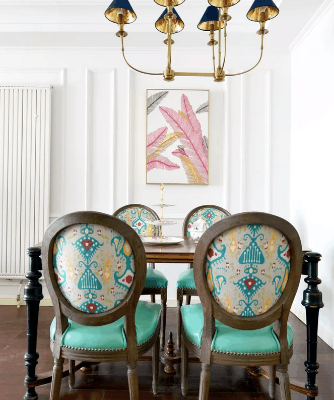 精美的王妃椅是整个空间的主角,王妃椅是件优雅的孤品,搭配斑马纹的小凳简直绝配!