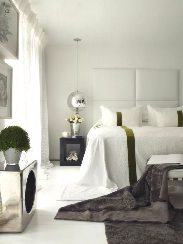 再看卧室,软装的质感、Tom Dixon银色吊灯的质感、铁皮花器的质感,对比与融合,平衡得刚刚好。