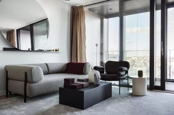 ▲ 一面大圆镜 给客厅创造戏剧化效果