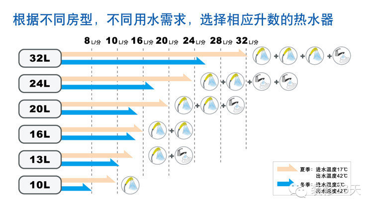 比如一家五口人一厨两卫用13L的燃气热水器一点没问题,基本不会2个龙头同时用热水。