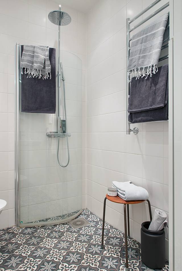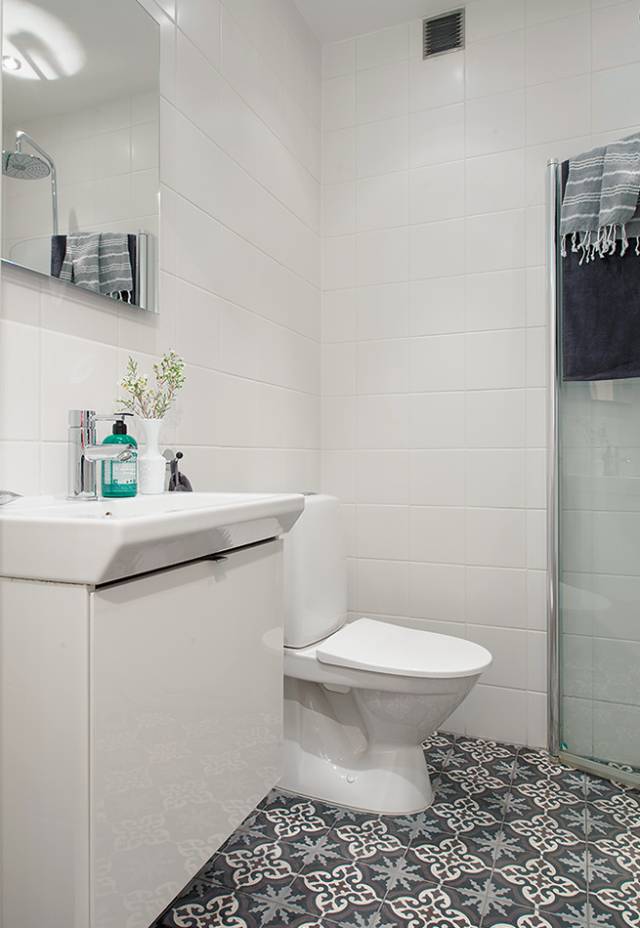 ▲卫生间比较狭窄,但实和就好。经过设计师的大胆猜想,将地面瓷砖选用黑白图案的,很是大气、宽敞。