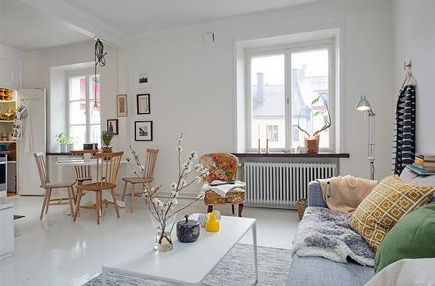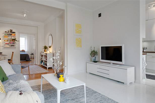 ▲客厅没有做过多的设计与装饰,只是在白色的基础上加入一点点的色彩,来进行点缀,同时正是因为这份白,所以客厅才会给人一种非常通透的感觉。