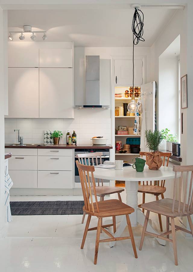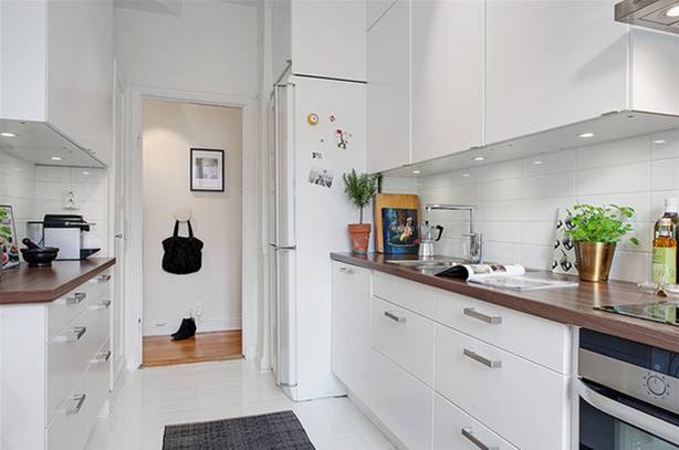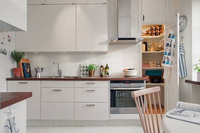 ▲一字型的纯白厨房设计,加上一面小窗户,即使空间再小,也不会显得很狭窄、压抑。