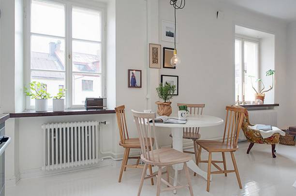 ▲无论是餐厅的设计,还是装饰都是以温馨为主,纯白色的餐桌搭配上原木材质的椅子,温馨的同时也不失时尚。