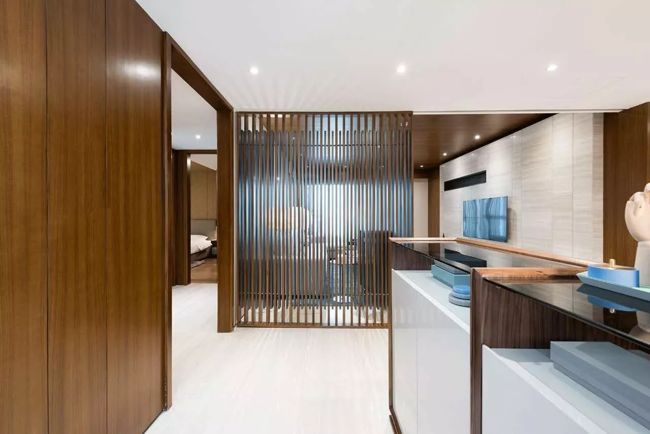 木格栅隔断是所有隔断样式中最容易扩充空间感的一种设计,这类隔断对空间户型的要求并不高,可以起到很好的空间延伸效果。