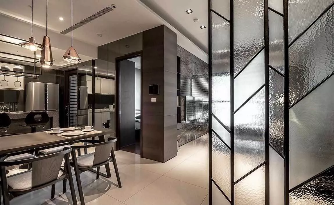 在采光条件有限的情况下,想要分隔区域又不影响通透感,可以使用玻璃隔断。玻璃隔断不仅好看、环保而且透光性比较好。磨砂、色彩、花纹,不同的玻璃质地,也将会带来不一样的风格。