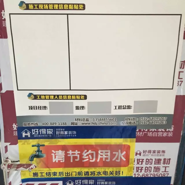 这样的施工告示牌在好得家装饰的工地随处可见,时刻告诫着工人按照80道标准工序、20个节点控制施工!这是大企业义不容辞的责任!