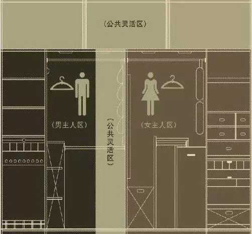 长衣区:高1400—1500mm,不低于1300mm。长衣区主要用于悬挂风衣、羽绒服、大衣、连衣裙、礼服等长款衣服。可根据自己拥有长款衣服的件数设计长衣区的宽度,一般来讲,宽450mm即够一个人使用,如果人口较多,可适当加宽。