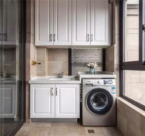 我们可以在洗衣机旁加一个立柜