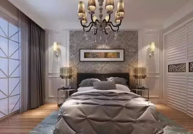 主卧中没有太复杂的吊顶,使用了软装的配饰以及软包的背景墙设计,让人感觉会很轻松。