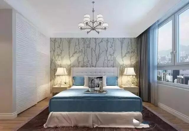 次卧的设计中,使用了定制的家具,壁纸背景墙的使用,简约而又不简单。