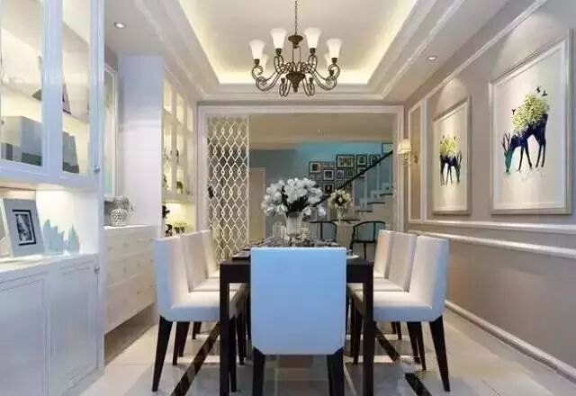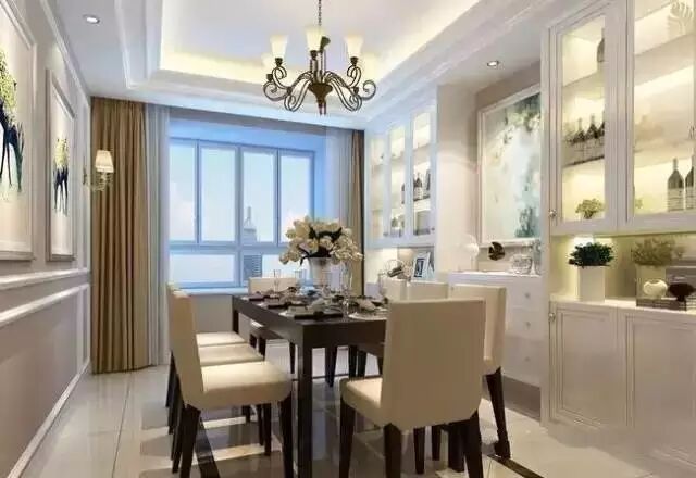 餐厅中使用了组合的酒柜和餐边柜进行搭配,实用而又美观。