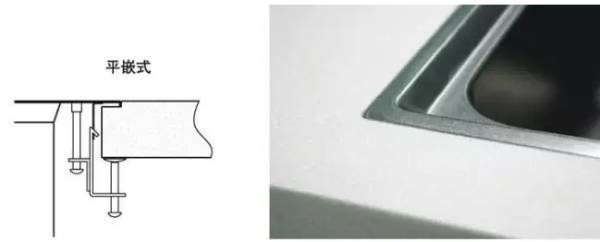 台中盆也叫平嵌式,就是按照水槽安装边的尺寸,在橱柜的台面打磨去一层,把水槽跟台面作成一个平面,这种安装方式美观,并且水槽与橱柜台面高度齐平,打扫卫生相对方便。台中盆除了安装要麻烦一点,也会多一笔平台打磨费用哦。