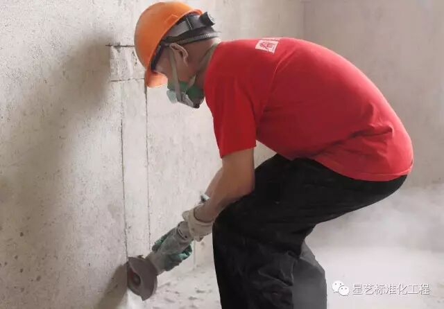 (1)针对100mm以上宽度线槽,外侧边缘应做"L"形批荡层清除处理,便于后期挂网封槽,清除宽度不少于50mm。