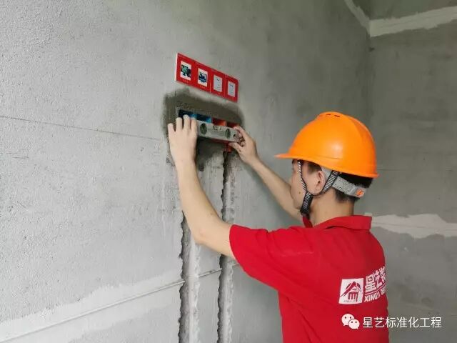 将电气底盒、箱体预先敷设,要求敷设稳固、水平,并与整墙饰面层处于同一平面。