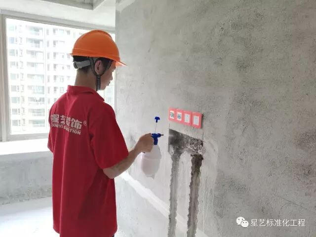 目的:预防因基底干燥吸水过快,影响线槽底部批平质量。