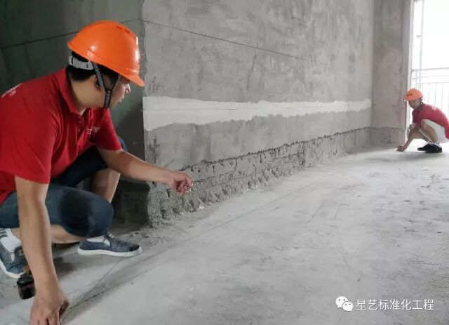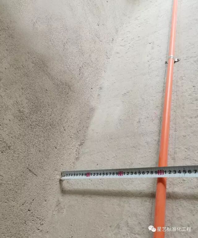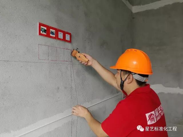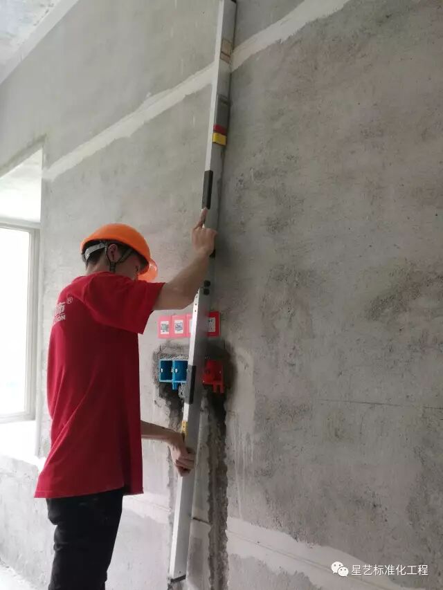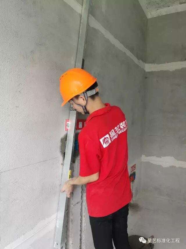 注:以上下冲筋条为基准,2m靠尺校正底盒整墙平整度。