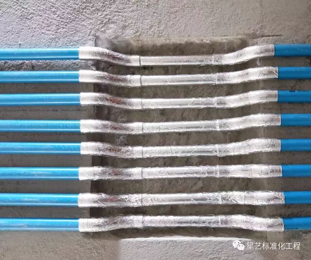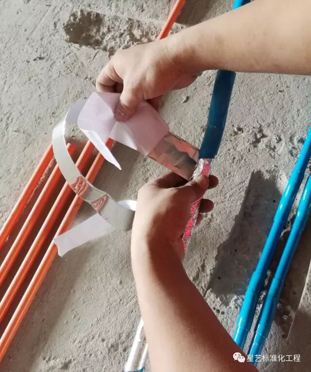 (3)当强、弱电线管平行间隔距离少于200mm时,弱电线管应用锡箔纸作通体缠绕处理,预防信号干扰。