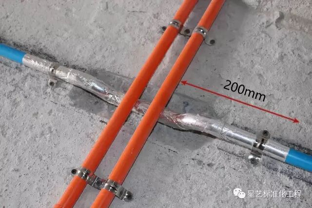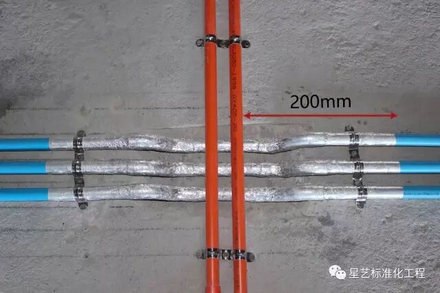 (2)强、弱线管保持200mm有效间隔距离,从而确保线管敷设安全、规范、合理、美观。