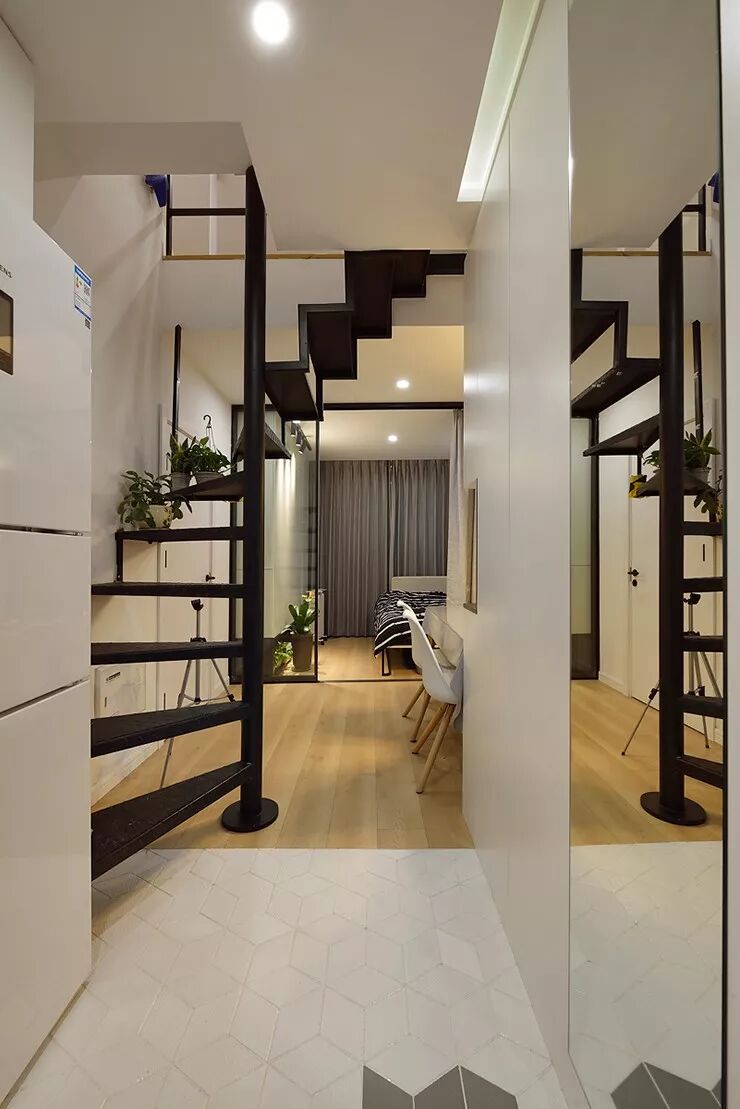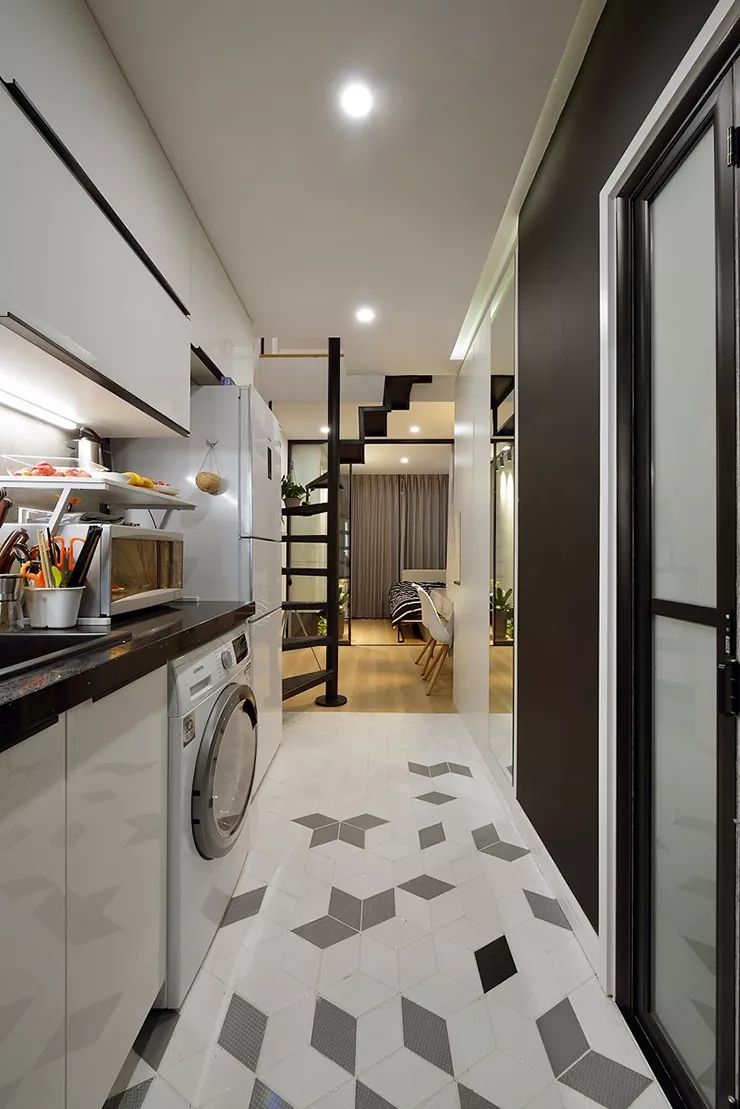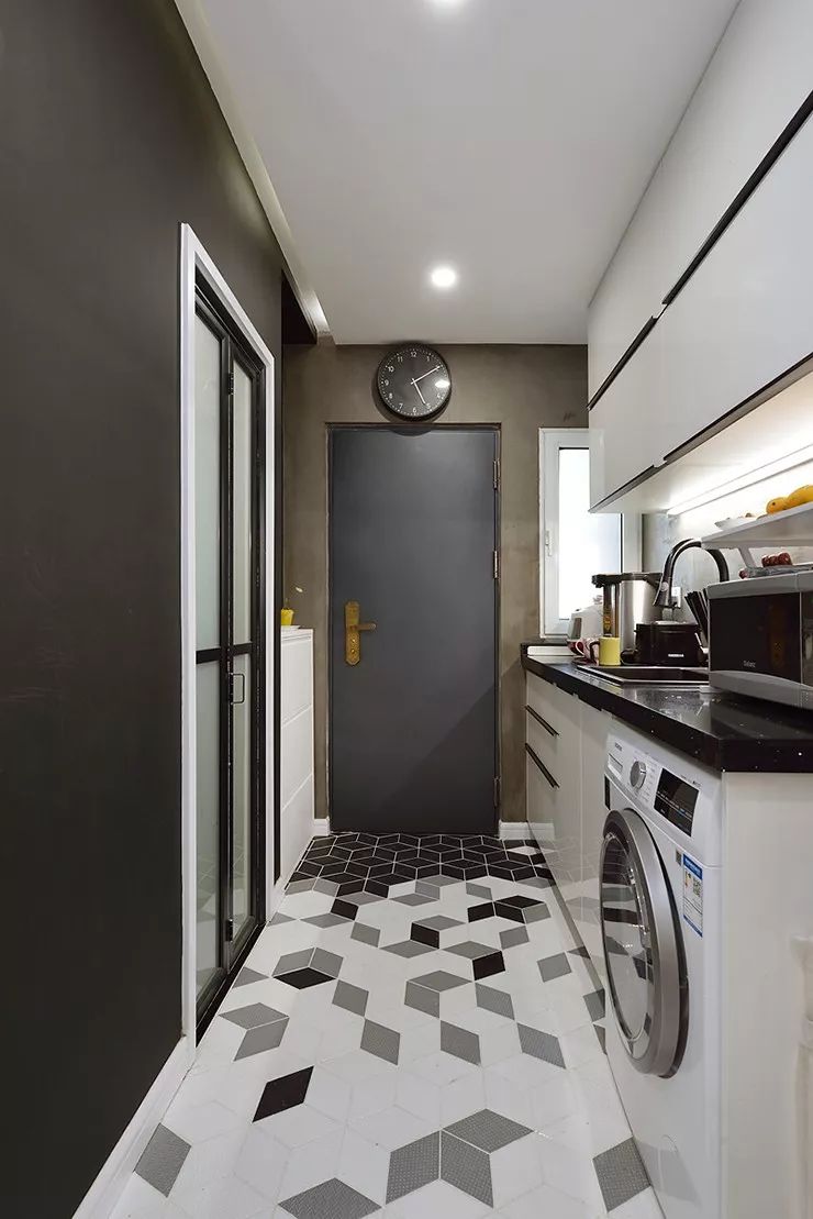 利用入户门移位+卫生间退位,打造了一个功能性的过道。